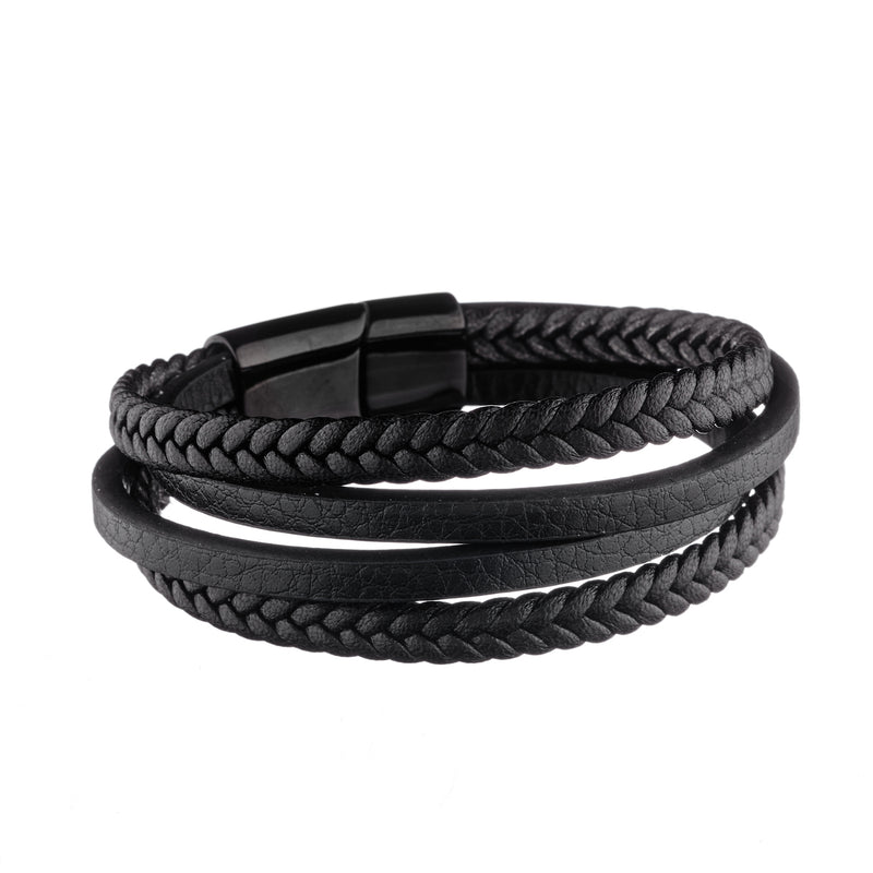 Ce bracelet noir en cuir véritable équipé d'un fermoir mécanique avec sécurité magnétique est fabriqué à la main. Sa taille unique est parfaitement ajustée pour l'immense majorité des hommes. L'accessoire indispensable pour un look moderne et tendance !